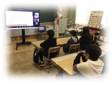 「日本で最も美しい村」交流の一環として、本校高学年児童が沖縄県多良間村の小学生とオンラインで交流授業を行いました。お互いの住む村について紹介し合う中で、子供たちからは驚きや感心の声が何度も聞かれました。同時に、自分たちの住む村の良さや魅力を見つめ直すきっかけともなり、地域への理解と愛着を深める有意義な学習となりました。
