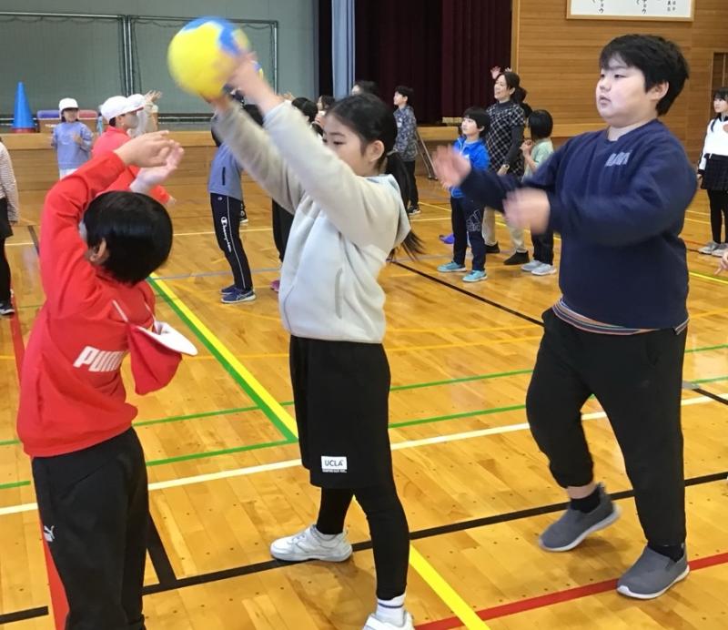 鶴居小学校の児童の皆さんと一緒に全体交流を実施したのち、各学年に分かれて一緒に授業を受けました。また、6年生は鶴居中学校へ行き、中学校の先生から体育の授業を教わりました。