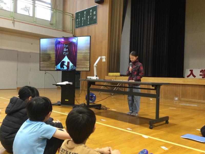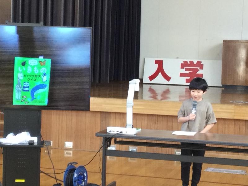 読書月間の取組の一つとして、11月25日(火)、27日(木)に読書発表朝会を実施しました。これは、全校児童が体育館に集まって、それぞれお気に入りの本を紹介し合う取組です。子供たちは事前に決めていた本をそれぞれ見所を交えながら紹介しました。