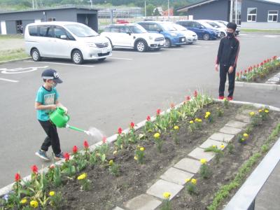 桜の花びらがひらひらと舞い降りたら、次はチューリップが真っ盛りです。今日はコスモスの種を6年生が蒔いてくれました。季節毎にきれいな花が咲いています。