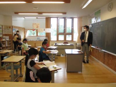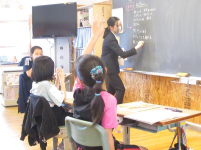 昨年度まで村内の中学校のALTだったレイ先生が今年度は小学校の外国語の学習に来てくれています。子供たちも笑顔で楽しそうにレイ先生と学習をしています。