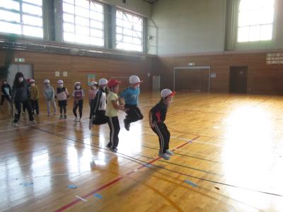 学校力向上に関する総合実践事業「小中連携」の取組の1つとして、毎週火曜日、鶴居中学校の先生が体育の授業を中心に授業に入ってくれます。授業は担任が進めますが、T2として授業に入ります。個人の目標達成に向けて練習する場面やグループに分かれて学習する場面など、複数の教員で進めることができます。理科専科、音楽専科と併せ、体育の学習でも小中連携を進めています。