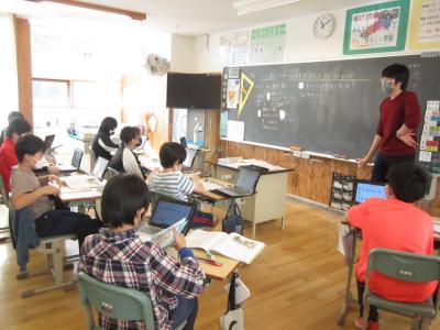 今日の5年生の理科は、村内の学校3校と結んでの遠隔授業を行いました。他の学校の5年生の意見を聞くことができたりと新たな気付きも生まれたようです。5年生の理科では今後も何回か遠隔での授業が行われます。6年生も同様に計画しています。