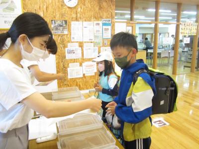 夏休み作品展をタンチョウホールで開催しています。玄関ホールに手指消毒と名前を記入する用紙を置いていますので、来校されたときは、ご協力お願いいたします。〈時間帯設定もありますので改めて27日にお便りを配布します〉
