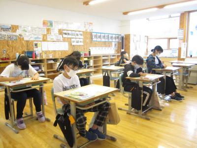 今日の子供たちの様子です。台風の影響の雨が心配されましたが、無事子供たちも登校し、帰りには晴れ間も見えてきました。1年生は2時間目はじまりの前の様子。2年生・3年生は学習発表会のお話中です。4年生・5年生は算数の学習の様子です。真剣に問題に向かっています。6年生は保健の学習で感染症予防についての学習をしました。