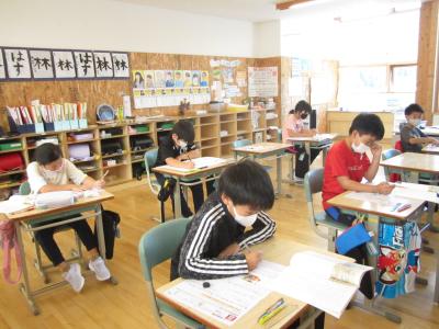 今日の子供たちの様子です。夏休みの思い出を発表したり、自由研究・作品を発表したり、7月までの学習の復習をしたりと久しぶりの学校の授業でしたが、子供たちはみんな集中してがんばっていました。