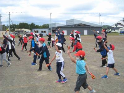 今日はふるさと祭りで披露するタンチョウソーランのリハーサルを学校で行いました。全校での踊るのは運動会以来なので、場所や踊りなどを確認しました。現地でのリハーサルは来週予定しています。