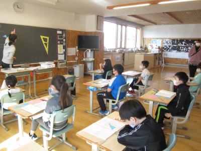 今日の子供たちの様子です。1年生は笑顔で給食を食べている様子です。2年生・6年生は集中して算数の学習をしています。3年生・5年生は道徳の学習です。子供たち同士で自分の考えを話したり、友達の考えを聞いて、自分の考えを広げ・深めている様子です。4年生は今月末に予定している兵庫県市川町立鶴居小学校の4年生との交流について話し合っている様子です。