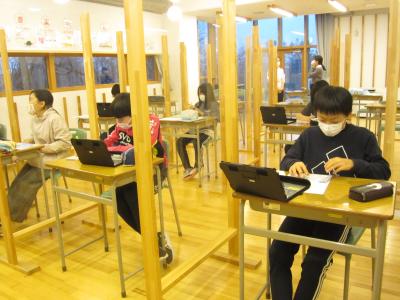 今日の子供たちの様子です。書写に短歌作り、外国語学習、デジタル教科書で社会の学習など今日もいろいろな学習に取り組みました。日中、雪は降りましたが除雪しながら予定通りのスケート学習を行うことができました。