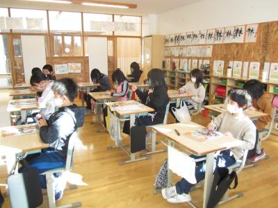 今週は、3年生、4年生、5年生の書き初め練習がありました。鶴居在住の児玉先生に特別講師として教えていただいています。子供たちは集中して取り組んでいます。