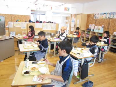 後期後半もスタートし、おいしい給食も始まっています。今は黙食ですが、子供たちはおいしそうに集中して食べています。