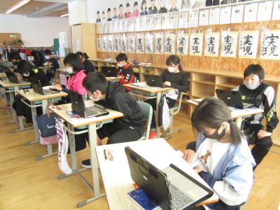 今日の子供たちの様子です。総合的な学習の時間のこれまでの学習のまとめをパワーポイントで作成している学年もいくつかあります。最後の参観日の発表に向け「相手意識」を大切にしてまとめています。低学年もTeamsというオンライン会議システムの練習をしています。